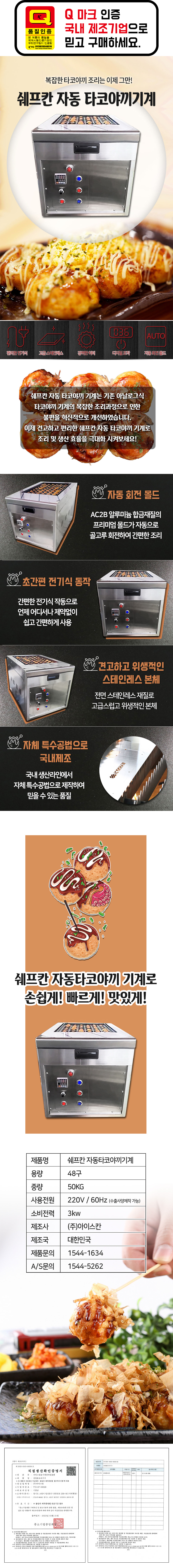 [쉐프칸] 전기식 자동타코야끼기계 Characteristics