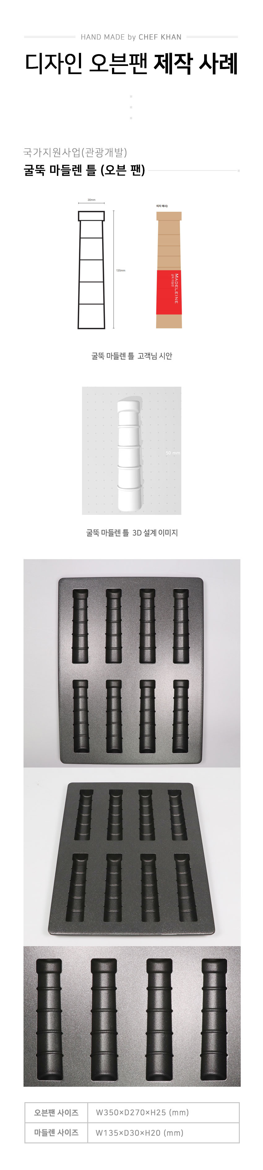 [CHEFKHAN] 주문제작 캐릭터빵기계 빵틀 마들렌틀 오븐팬- 굴뚝 마들렌틀 Characteristics